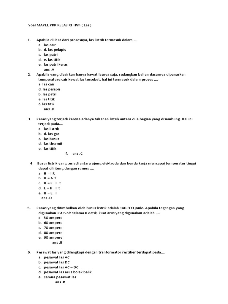 Contoh Soal Dan Jawaban Teknik Pengelasan Pdf Ilmusosial Id