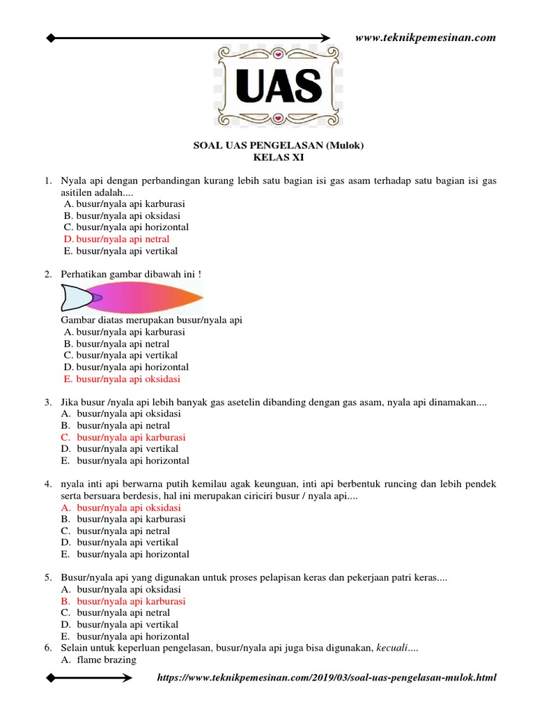 30 Soal Dan Kunci Jawaban Uas Pengelasan Mulok Teknik Pemesinan