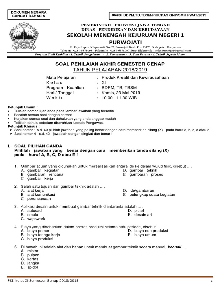 Soal Pas Pkk Gnp 2019 Kls Xi Docx