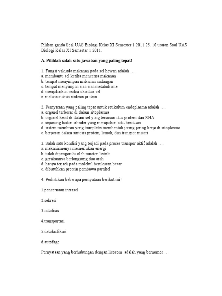 Pilihan Ganda Soal Uas Biologi Kelas Xi Semester 1 Doc