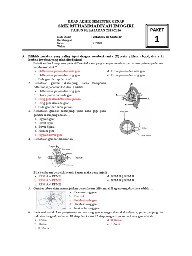 Soal Uas Chassis Paket 1 Kelas Xi Tkr Sem 1