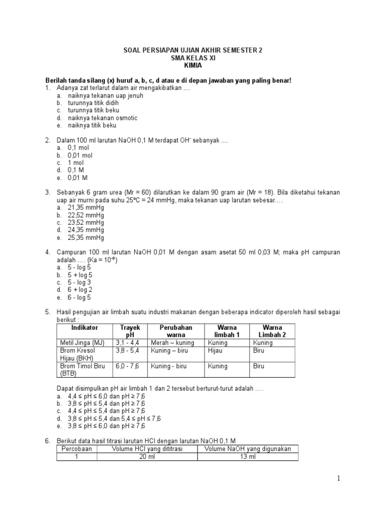 Soal Kimia Kelas Xi Sma Persiapan Ujian Akhir Semester 2